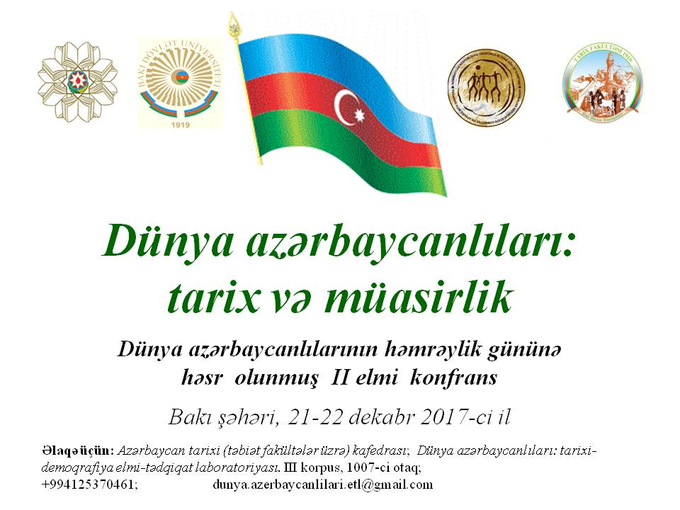 Bakı Dövlət Universitetinin Tarix fakültəsi, Azərbaycan tarixi (təbiət fakültələri üzrə) kafedrası və Dünya azərbaycanlıları: tarixi demoqrafiya elmi tədqiqat laboratoriyasının təşkilatçılığı, Diasporla iş üzrə Dövlət Komitəsinin və Təhsil nazirliyinin dəstəyi ilə təşkil olunacaq növbəti respublika konfransını təşkil edərkən əsas hədəfimiz qocalmaqda olan elmimizə gənclik ruhu vermək, gənclərin elmi araşdırmalara olan marağını artırmaq və həqiqi akademik səviyyədə araşdırmaların müzakirə olunduğu mühit yaratmaqdır!